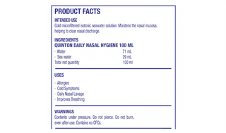- Quinton® Daily Nasal Spray provides a hydrating nasal mist derived from mineral-rich cold microfiltered seawater, designed to support nasal and sinus passage wellness and healthy breathing.